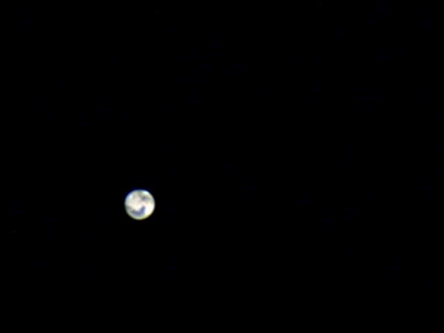 Fotot av Mars är taget i Knivsta 2012, när planeten befann sig på 100 miljoner kilometers avstånd från Jorden. Överst ser man is på ena polen. Den nedre mörka regionen är Syrtis Major Planum, ett område med vulkanisk sten av basalt.