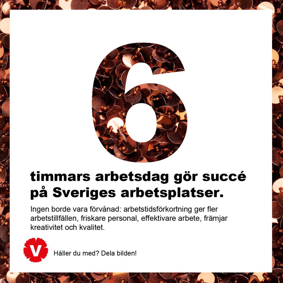 Trots en enorm ökning av vinster och produktivitet har normalarbetsveckan om 40 timmar varit oförändrad för större delen av arbetsmarknaden sedan 1973. Detta samtidigt som sjuktalen och ohälsan ökar kraftigt på hela arbetsmarknaden. Detta samtidigt som det årligen arbetas övertidstimmar som motsvarar 150 000 heltidsjobb.
