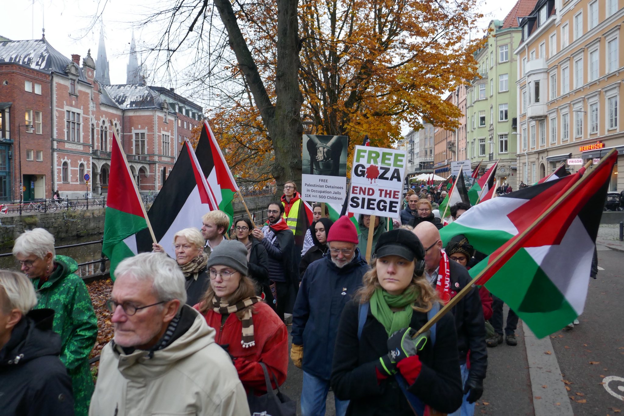 Jag har hört att det finns de som vill terrorstämpla denna och andra fredliga demonstrationer i olika svenska städer. De verkliga terroristerna är Israels ledning som utövar folkmord på civilbefolkningen i Gaza. Samtidigt som vår statsminister förminskar detta folkmord till dåligt beteende, tycker att SVT borde ta Ukrainakriget i partiledardebatten istället för Gaza. Detta samtidigt som vår vice statsminister tycker att världen ska tacka Israel. Vänsterpartiet kräver att Sveriges regering bryter sin tystnad och står upp för det Palestinska folket.