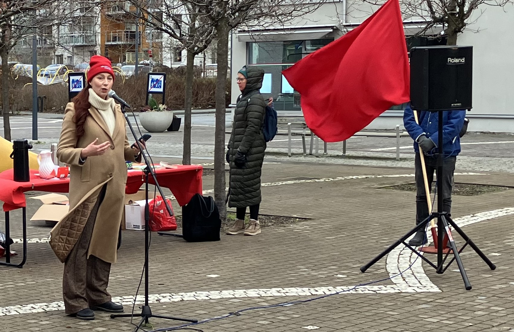 Vi har gått till val på ”ett Knivsta för alla” med framtidstro, jämlikhet och solidaritet. Därför menar vi duger det inte, som Knivstas styre gjort, att tacka ja till ”samtal” om ”frivillig återvandring”. Hur frivilligt är det när SD:s företrädare hotar att dra in statsbidragen om man väljer att ställa upp för alla sina medborgare som bor i kommunen? Denna sista lördag 2025 som vi står på torget ägnar vi åt att manifestera mot kommunledningens beslut att tacka ja till nämnda samtal om återvandring.